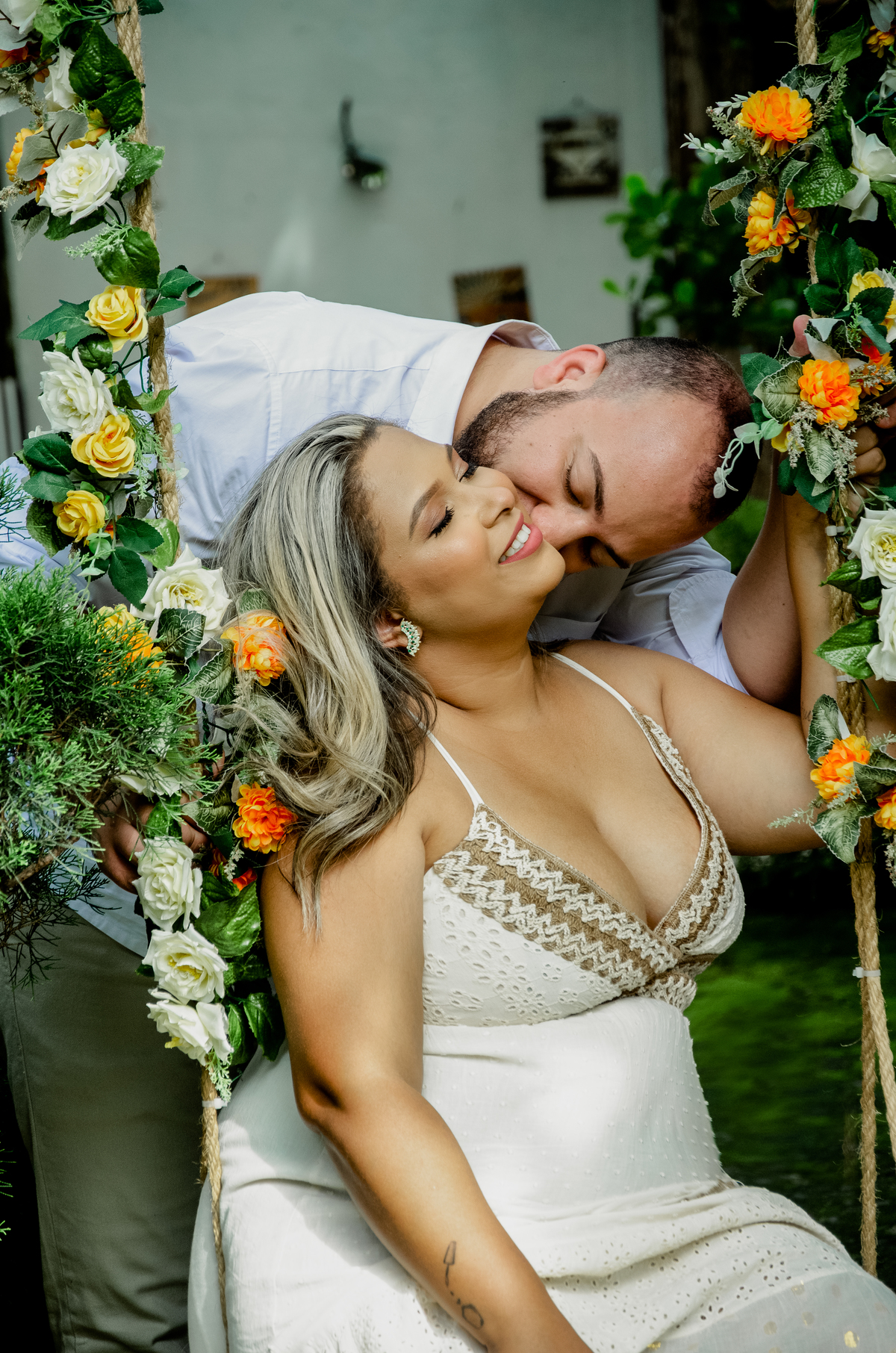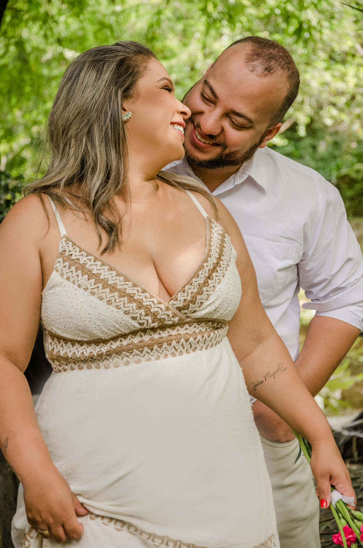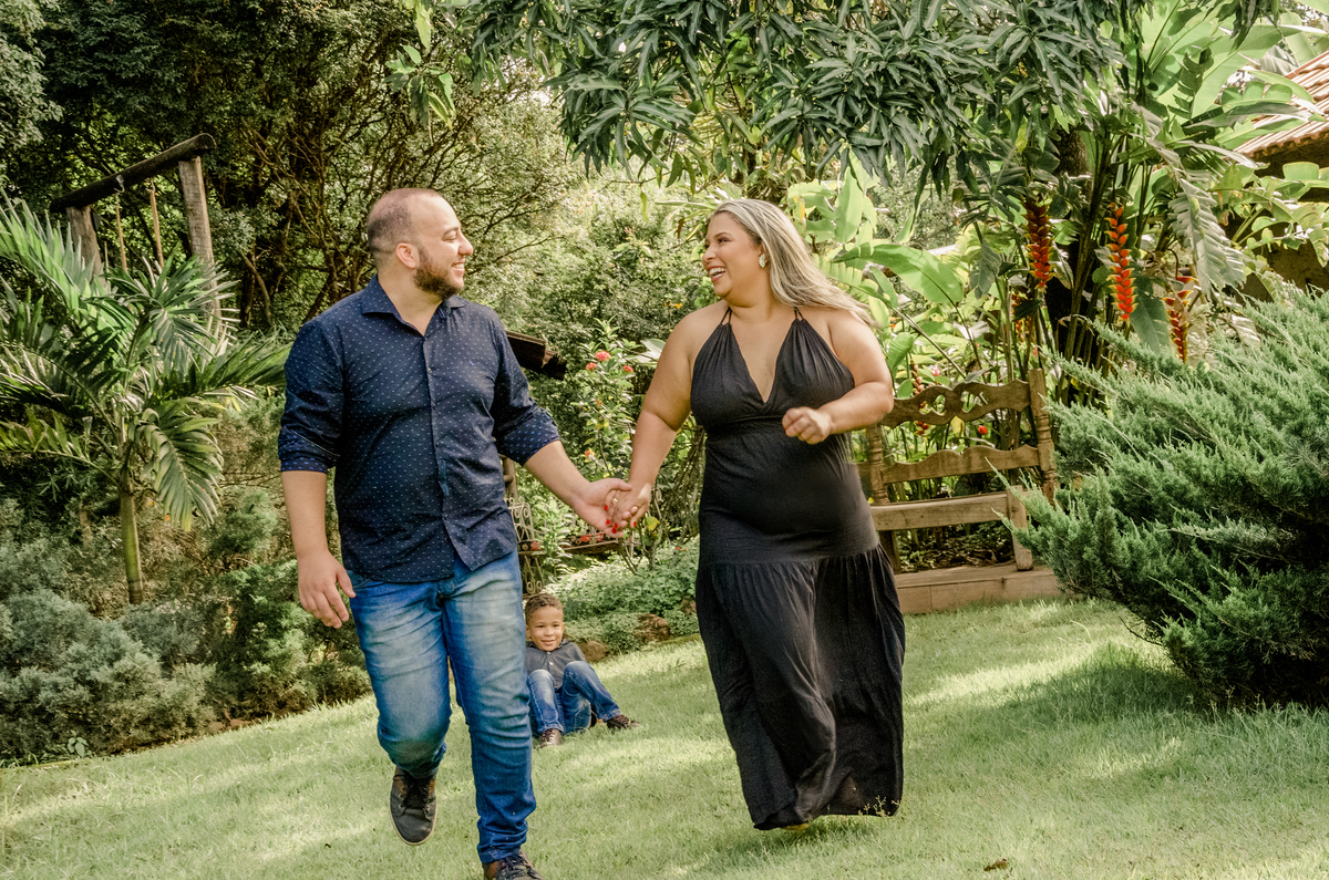 Vou tentar fazer um resuminho aqui. São quase 7 anos de histórias, né? Eu e Gabriel somos totalmente opostos; eu sou intensa e ele é ponderado. Desde a primeira vez que a gente se viu, tivemos uma conexão muito grande. Mesmo nos momentos de briga, problemas e términos, a gente se ajudava. Com 2 anos de namoro, nos tornamos uma família com a chegada de Miguel. E só com 4 anos de namoro fomos viver juntos e formar um lar. E agora, com quase 7 anos juntos, vamos casar.